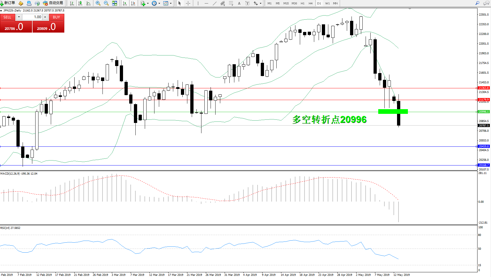 日经指数周一收跌,在中美贸易摩擦升级之后,多数景气循环板块失守,美国股指期货下跌也打压人气。日经指数N225 收跌0.7%21,191.28点,为328日以来最低收位。虽然股指下滑,但去年特朗普首次对中国输美商品加征关税时跌幅更大。中国像以往一样快速报复是一个明确的信号,表明他们不会接受摆布,市场本期待中国更友好一些,甚至期待对中国产生些许自满情绪。有趣的是周末没有行动,而是在周一早上,刚好赶上市场开盘。