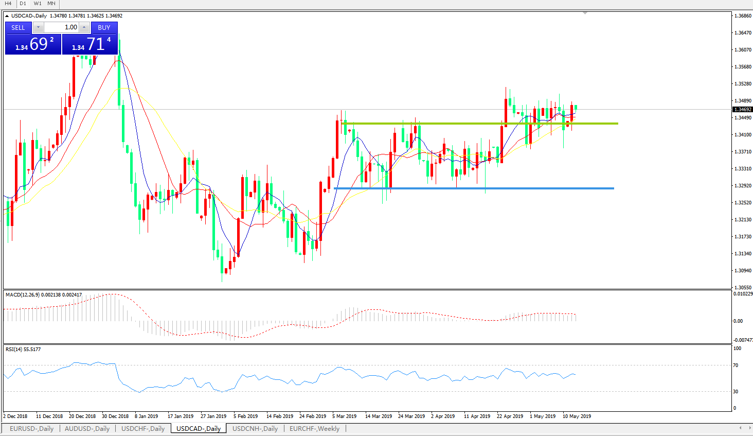 技术面简析:日线图均线粘合呈整理态势,汇价整体延续宽幅整理偏强势,MACD0轴上方运行但动能柱量能尚可,RSI震荡整理,预计汇价近期大概率将进一步走高。