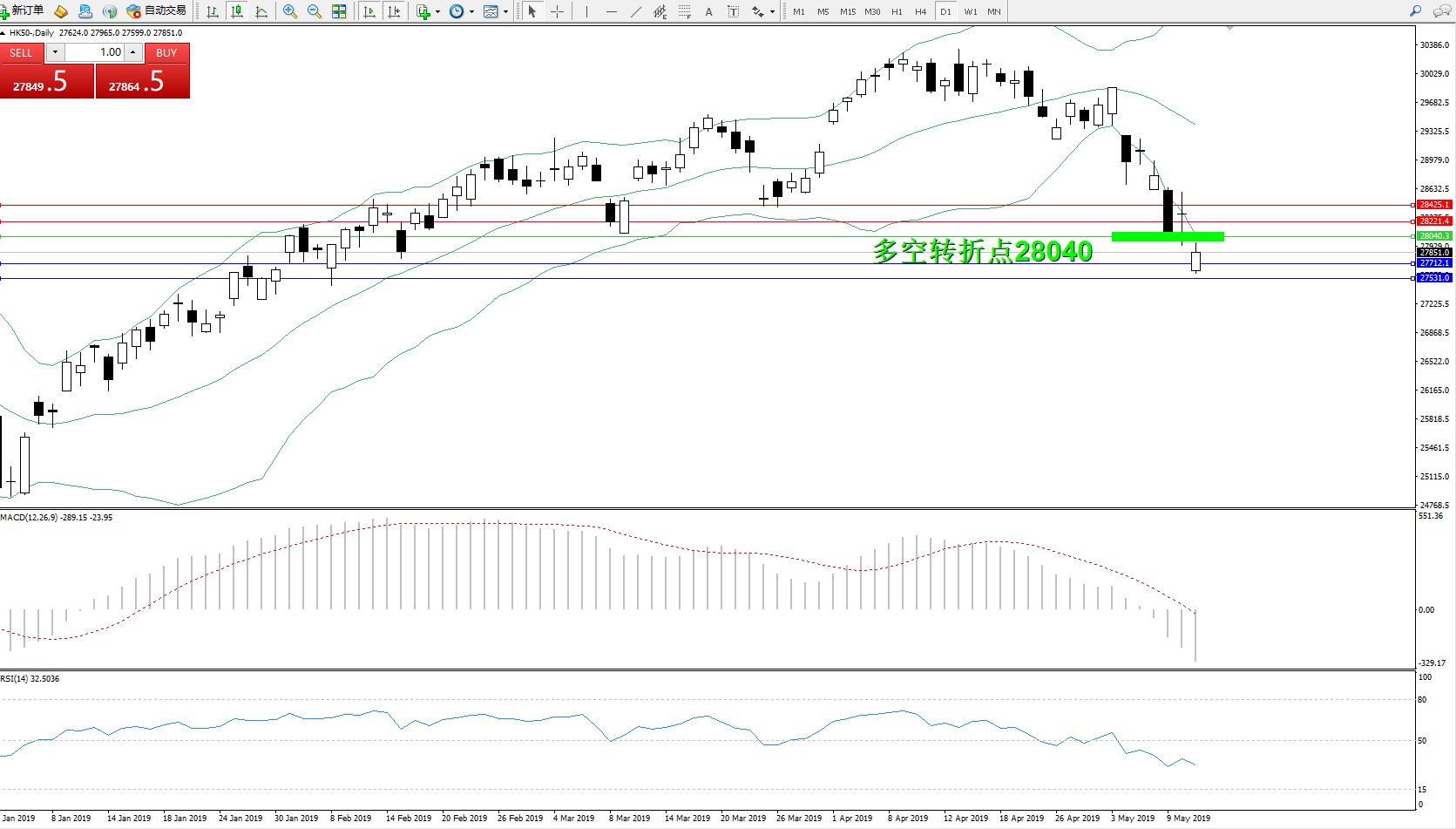 中国内地股市全天基本在平盘线下方震荡,截至收盘,上证综指跌0.69%,收于2883.61点;香港恒生指数低开后维持低位震荡,跌1.5%,收于28122.02点,早盘一度跌超2%,跌破28000点。国务院关税税则委员会发布公告决定,对原产于美国的部分进口商品提高加征关税税率。同时,新闻联播刊播国际锐评指出,原则底线问题上,中方决不会做出让步。美国下一步是要谈,还是要打,抑或是采取别的动作,中国都已备足了政策工具箱,做好了全面应对的准备。