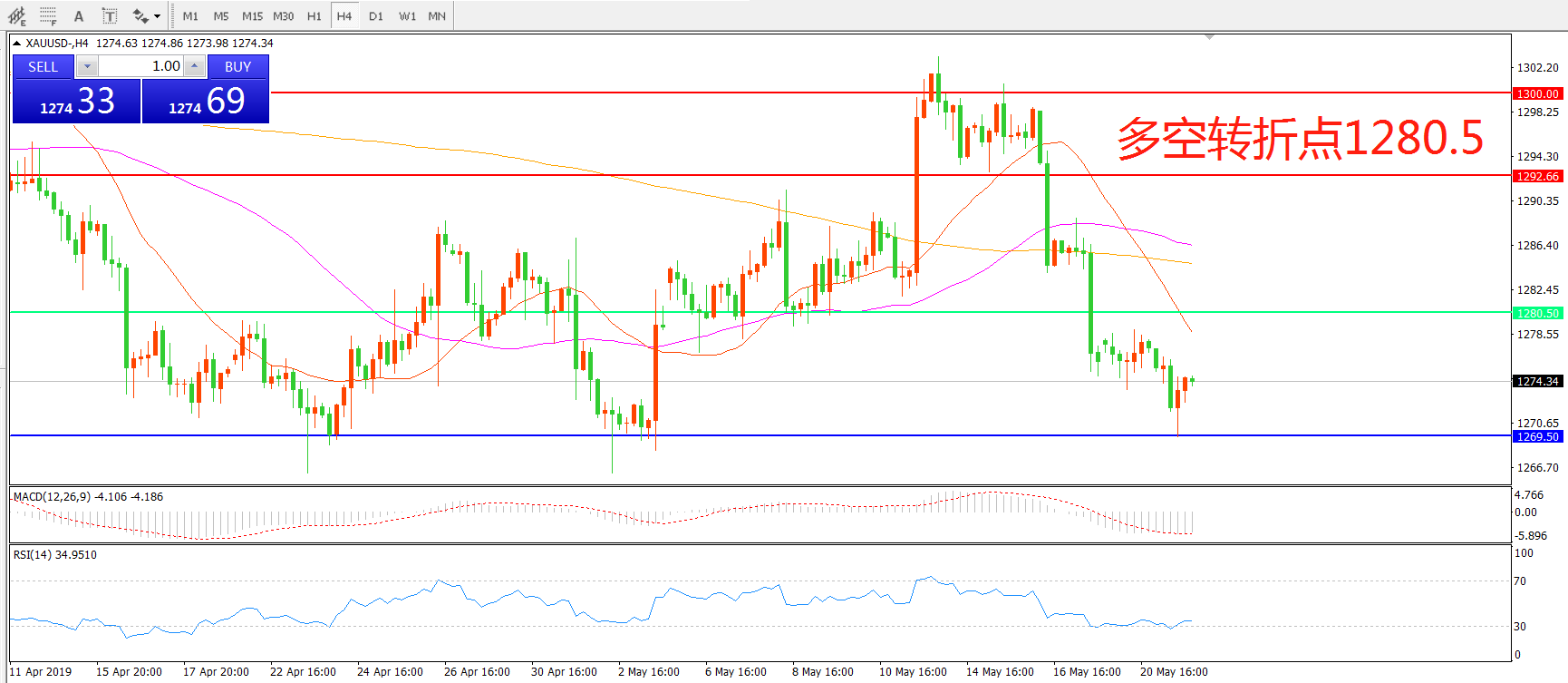 交易策略:在1280.50之下看跌,目标1269.50 1250.00