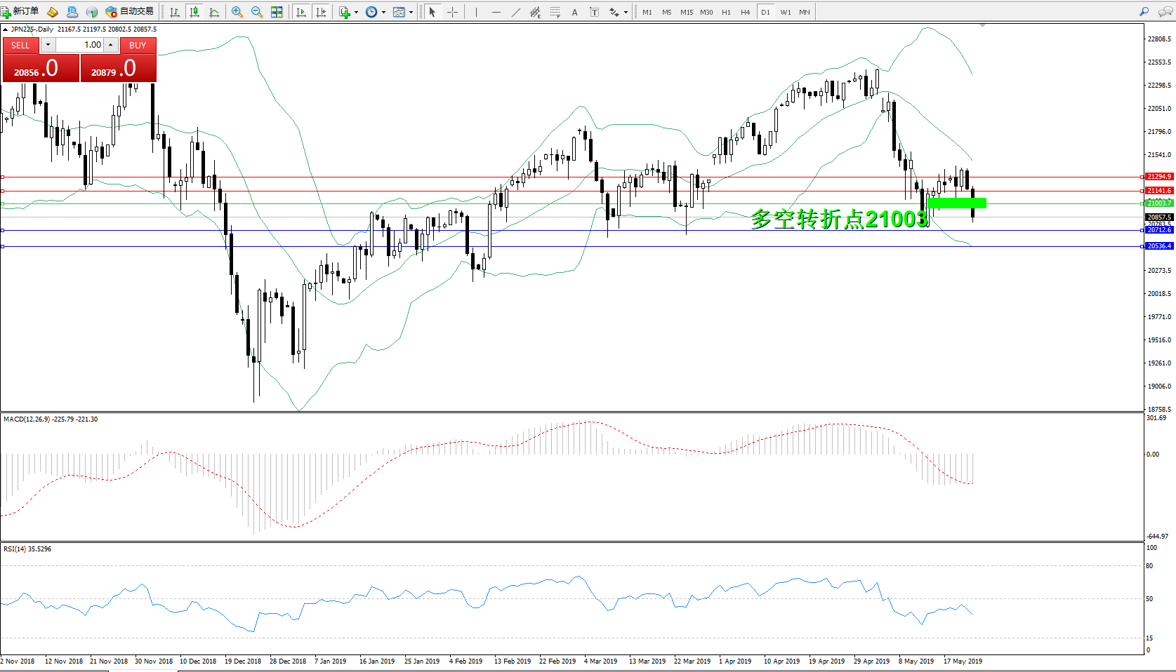 日经指数周四下跌,因中美贸易关系再次紧张起来,拖累科技股下跌,指数权重股软银集团重挫逾5%。日经指数N225收低0.6%21,151.14点。中美贸易摩擦再度升级,加剧了日本商品生产商的担忧。隔夜道琼斯工业平均指数收跌286.14点,报25490.47点,市场担心美中贸易战不断升级将阻碍全球经济增长。美国股市在5月遭遇抛售压力,需求前景黯淡影响。