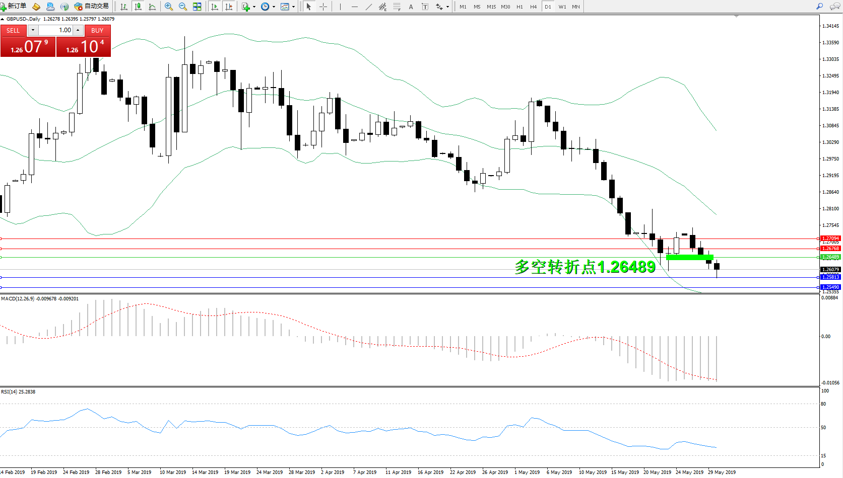 交易策略:1.26489下方看跌,目标1.258131.25490