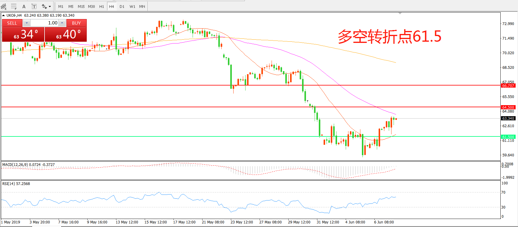交易策略:在61.50之上看涨,目标64.50    66.70