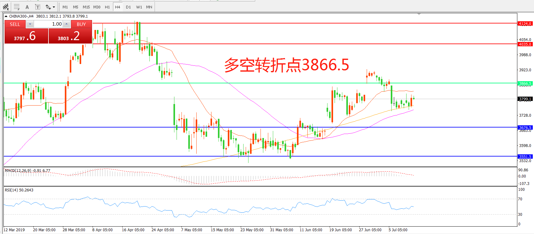 4小时图看,沪深300指数延续窄幅震荡走势,21周期均线成为下方支撑,MACD红柱缩短,RSI指标走平,日内延续震荡概率较大。