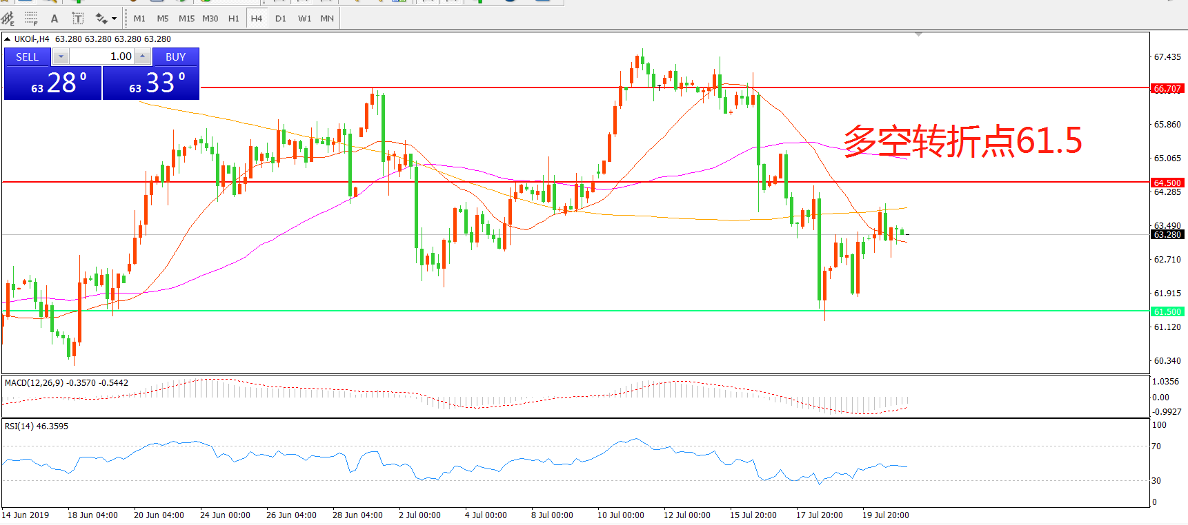 阻力位:64.50 66.70