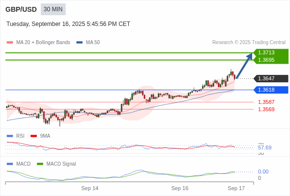 交易策略: 看涨,当 1.3618 为支撑位。