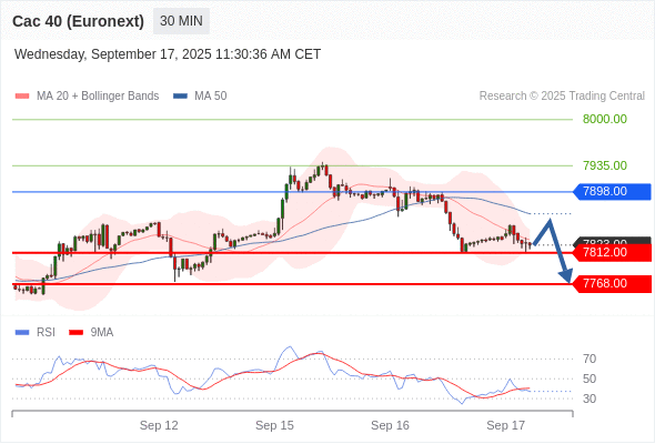 在 7898.00 之下,看跌,目标价位为 7812.00 ,然后为 7768.00 。
