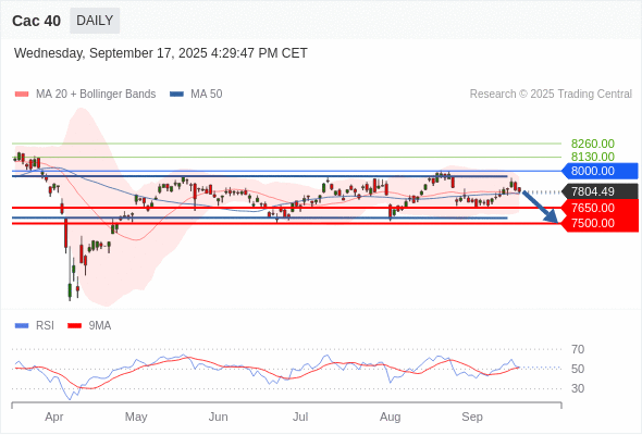 交易策略: 在 8000.00 之下,看跌,目标价位为 7650.00 ,然后为 7500.00 。