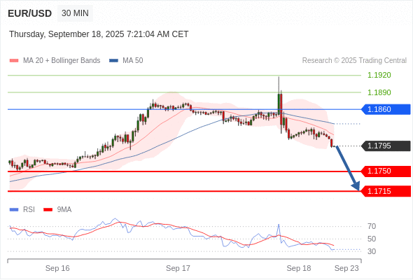 交易策略: 在 1.1860 之下,看跌,目标价位为 1.1750 ,然后为 1.1715 。
