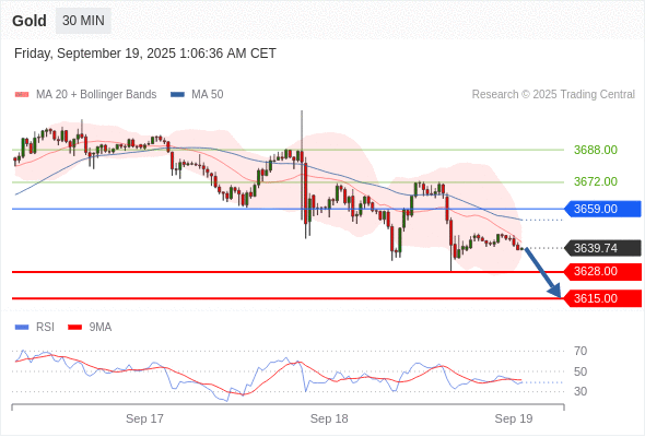 黄金现货 当日内: 短期关键阻力位在3659.00。