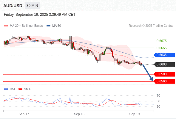 在 0.6635 之下,看跌,目标价位为 0.6580 ,然后为 0.6560 。