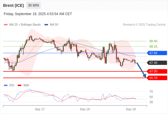 交易策略: 在 67.85 之下,看跌,目标价位为 67.00 ,然后为 66.70 。