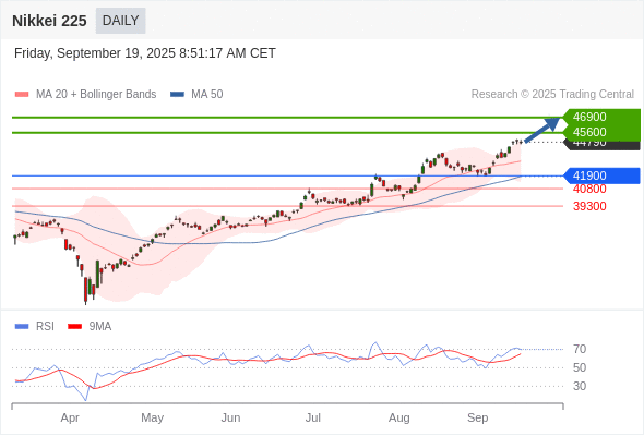 在 41900 之上,看涨,目标价位为 45600 ,然后为 46900 。