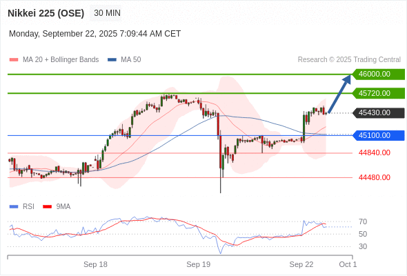 在 45100.00 之上,看涨,目标价位为 45720.00 ,然后为 46000.00 。