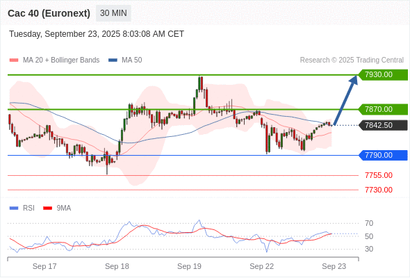 在 7790.00 之上,看涨,目标价位为 7870.00 ,然后为 7930.00 。