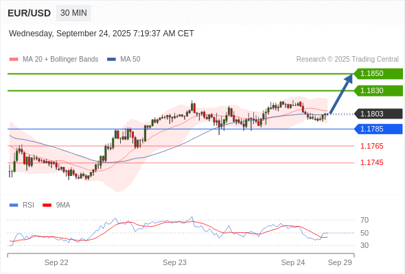 在 1.1785 之上,看涨,目标价位为 1.1830 ,然后为 1.1850 。