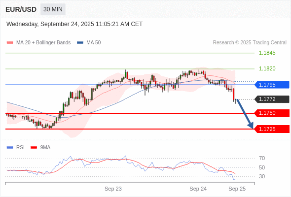 在 1.1795 之下,看跌,目标价位为 1.1750 ,然后为 1.1725 。
