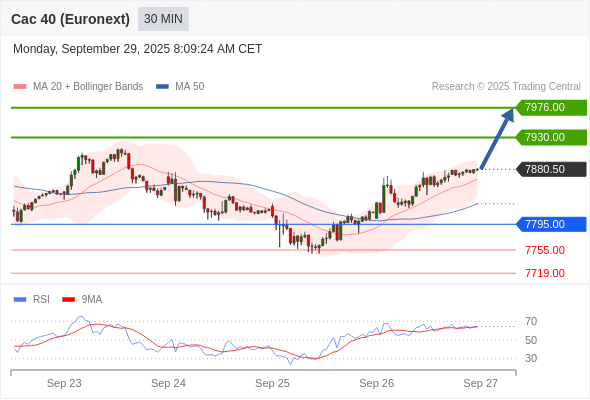 在 7795.00 之上,看涨,目标价位为 7930.00 ,然后为 7976.00 。