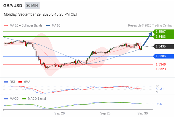 交易策略: 看涨,当 1.3386 为支撑位,目标定在1.3507。