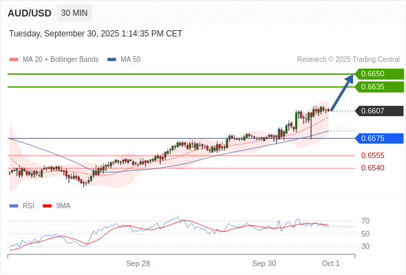 在 0.6575 之上,看涨,目标价位为 0.6635 ,然后为 0.6650 。