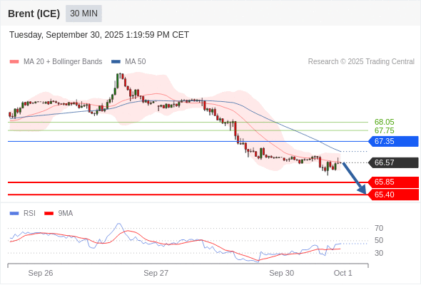 在 67.35 之下,看跌,目标价位为 65.85 ,然后为 65.40 。