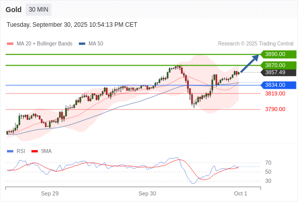 在 3834.00 之上,看涨,目标价位为 3870.00 ,然后为 3890.00 。
