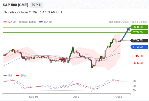 在 6742.00 之上,看涨,目标价位为 6785.00 ,然后为 6800.00 。