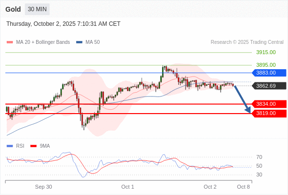 交易策略: 在 3883.00 之下,看跌,目标价位为 3834.00 ,然后为 3819.00 。