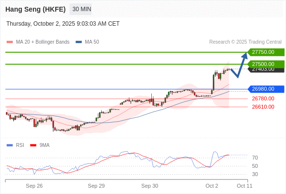 香港恒生指数期货 当日内: 目标位为27750.00。