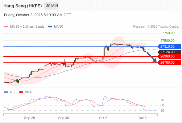 在 27310.00 之下,看跌,目标价位为 26980.00 ,然后为 26780.00 。