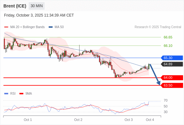 交易策略: 在 65.30 之下,看跌,目标价位为 64.00 ,然后为 63.50 。