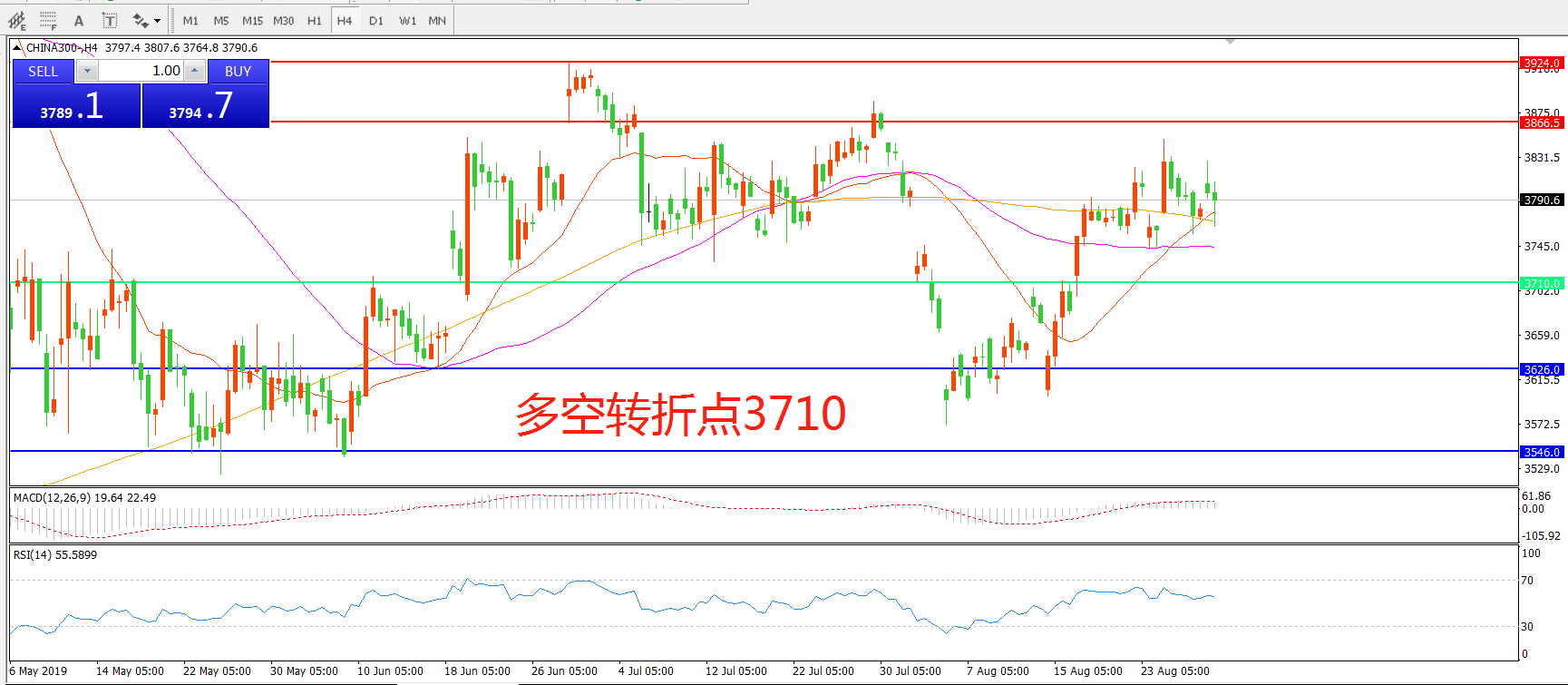 多空转折点:3710.00