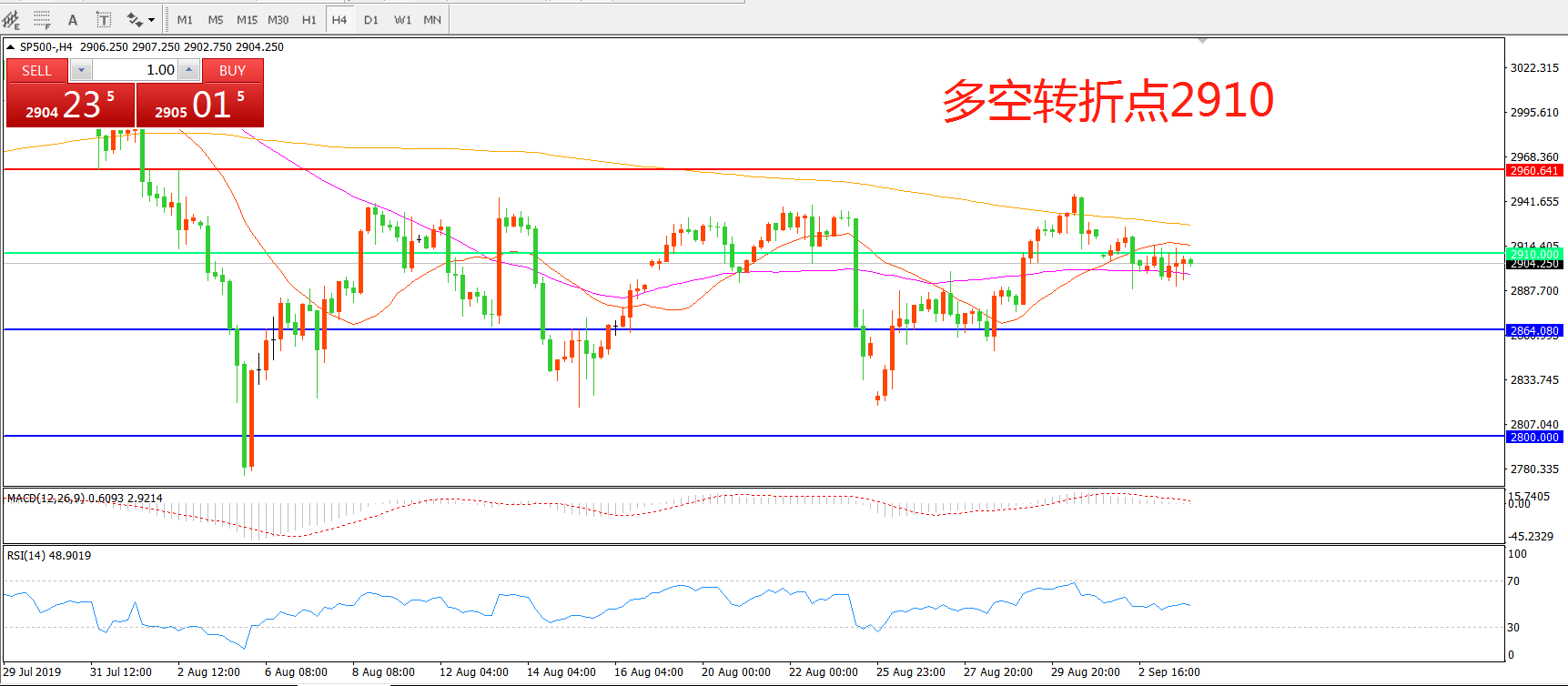 多空转折点:2910.00