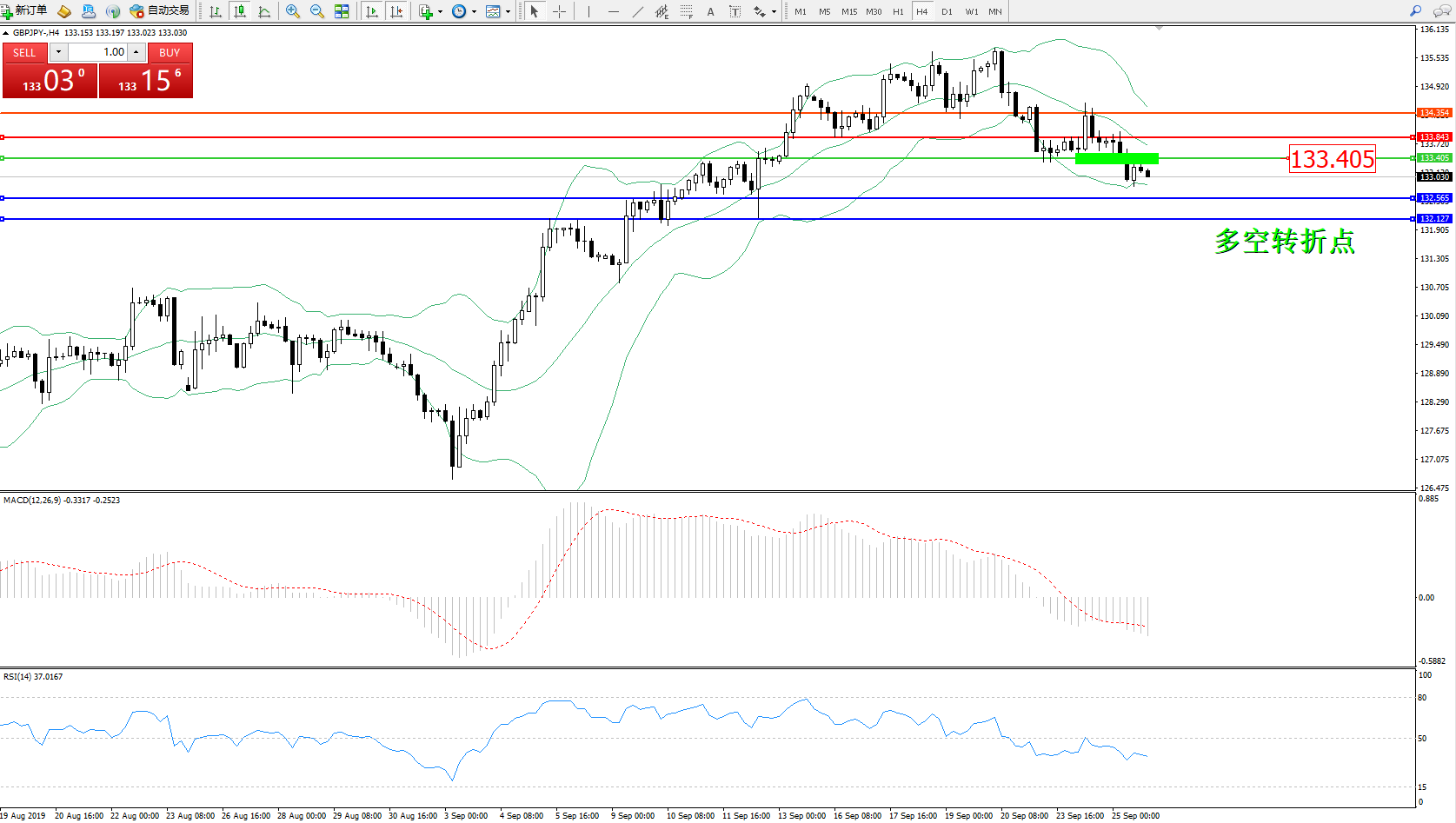 交易策略:133.405下方看跌,目标132.565132.127
