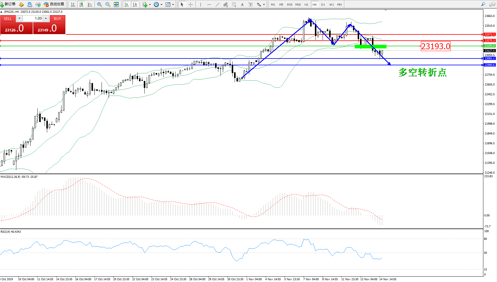 日经225指数11月14日(周四)收盘下跌169.87点,跌幅0.73%,报23150.00点。日本经济再生大臣西村康稔:支撑民间消费的基本面仍稳健,与韩国关系恶化对疲弱的出口有很大影响,汽车和电子零部件的出口仍然疲软,将竭尽全力制定稳健的经济计划,应对经济下档风险,预计未来经济还会继续温和复苏,GDP数据显示经济整体复苏,将密切关注民间消费。