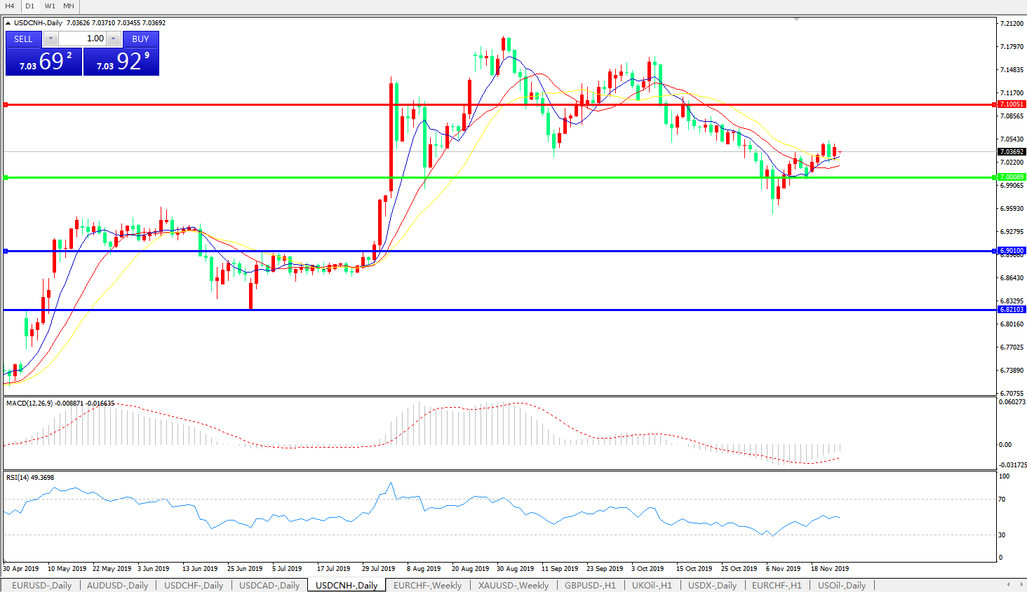 技术面简析:日图均线有逐步走出多头排列的迹象,汇价7.0关口上方缓步上攻,MACD运行于0轴下方且量能持续收缩,RSI维持整理态势,预计短期汇价将在7.0关口附近维持偏强整理态势,中期汇价需等待美元指数及中美贸易谈判进展指引。