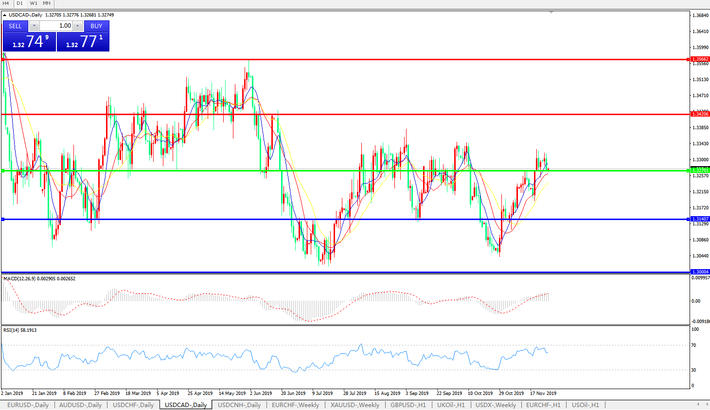 美元兑加元USDCAD 日线图: