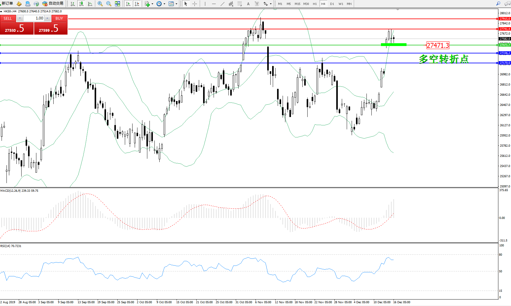 恒指HK50 ——4小时K线图显示: