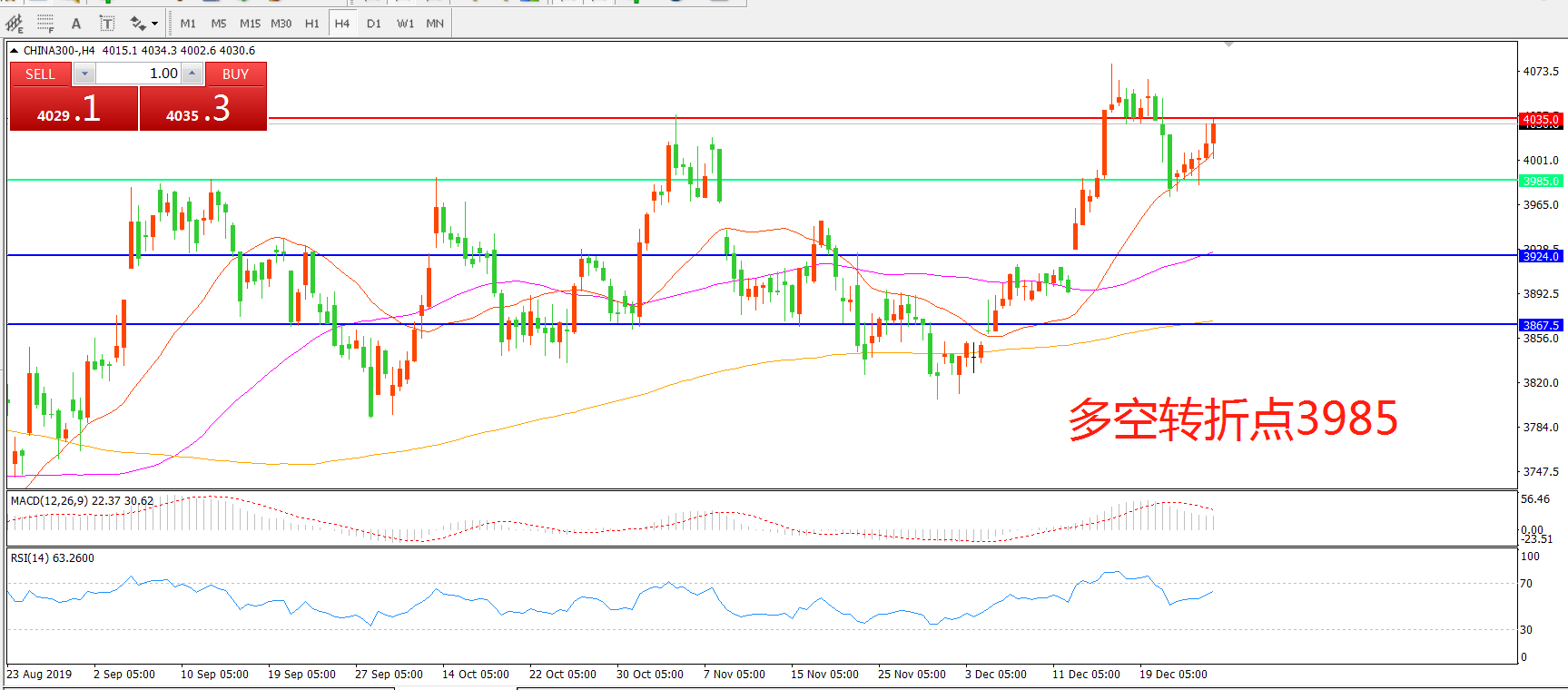 周四(12月26日),市场开盘后维持震荡上行走势,科技股表现活跃,午后市场略有调整,临近收盘时股指在券商等金融股带领下持续拉升至尾盘,个股随即大面积跟涨。沪深300震荡走高,收报4029点。总的来看,随着市场量能缓慢释放后,股指有望持续突破上方压力,当前市场在2019年岁末、2020年初迎来政策密集期,行情有望被点燃。