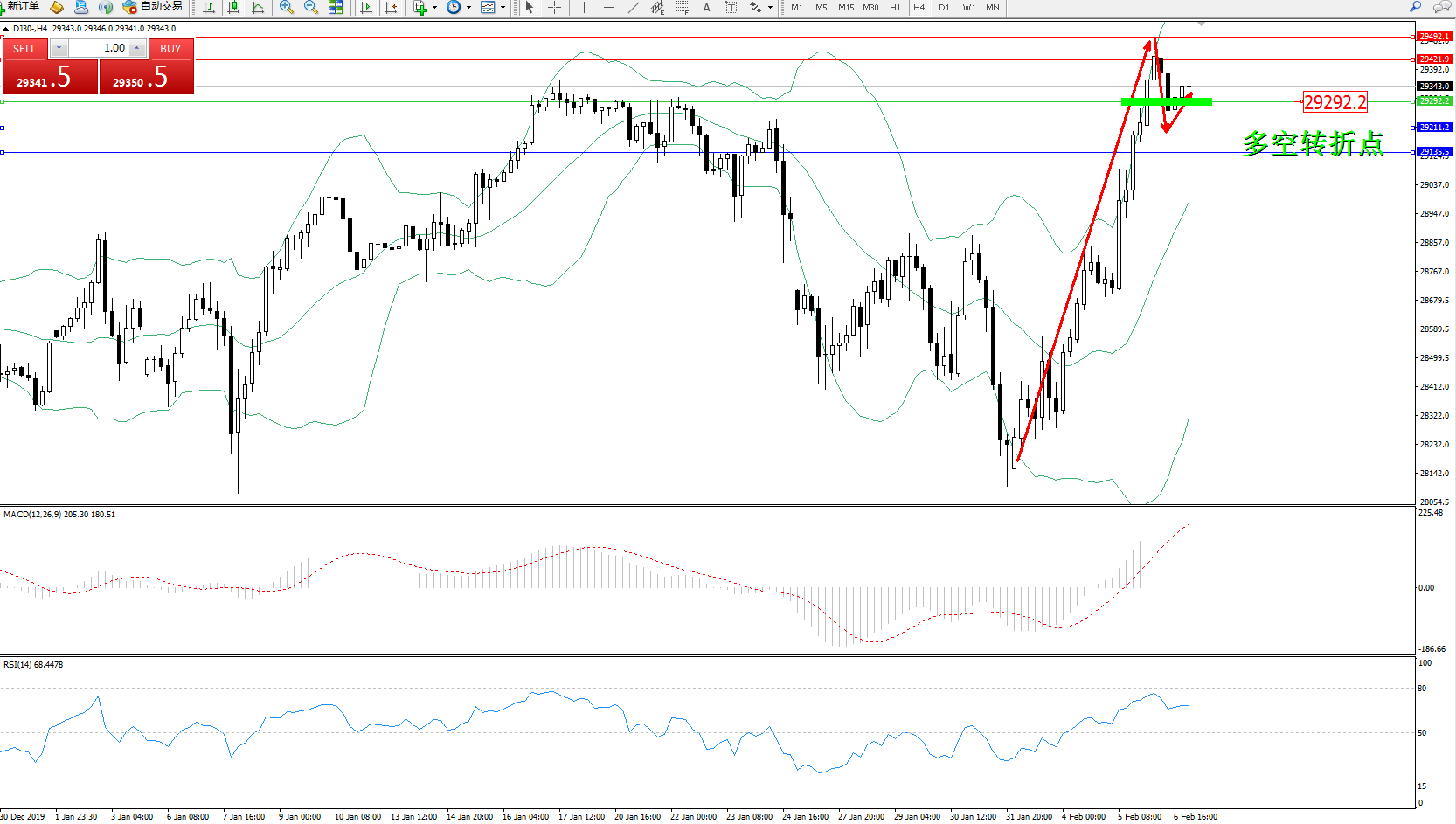 道琼斯指数2月6日(周四)收盘上涨88.90点,涨幅0.30%,报29379.77点。近期美国经济数据强劲,且对公共卫生事件的担忧有所缓解,投资者预期周五将公布的美国非农就业数据将表现稳健。国际贸易形势朝着正常的方向发展,美股继续高走,连涨四个交易日,道指盘中一度涨超100点,尽管全球公共卫生事件对经济的影响仍然不明朗,但是美国股市仍不懈地上涨,得益于稳健的公司业绩,以及一旦增长动摇,各国央行准备好采取行动的迹象,主要基准股指再创新高,这股涨势促使部分公司警告投资者当中出现过于亢奋的情绪。