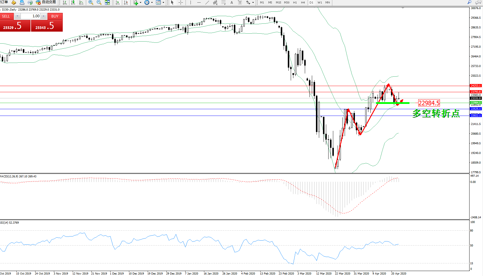 道琼斯指数423日(周四)收盘上涨39.40点,涨幅0.17%,报23515.26点。美股多数收跌,据报道称,一项领先的试验性新冠药物临床试验表现不佳,尽管数据显示美国上周首次申请失业救济人数大增440万,而且其它多项数据显示经济形势惨淡。资者把希望寄托在曲线持续变平和最终开发出疫苗上,他们愿意暂时无视负面的经济数据,关注那些表明当前不利因素可能被证明只是暂时的,那些更有利的发展,今天突如其来的反应展现了投资者在当前环境中的反复无常。美国众议院议员周四将齐聚华盛顿,通过一项4840亿美元的新冠疫情救助法案,使总获批援救金额达到空前的近3万亿美元。