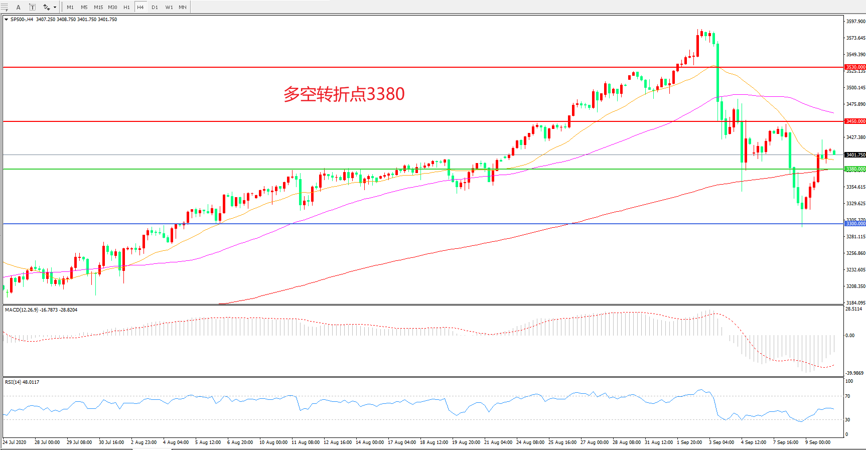 交易策略:在3380.00之上看涨,目标3450.00         3530.00