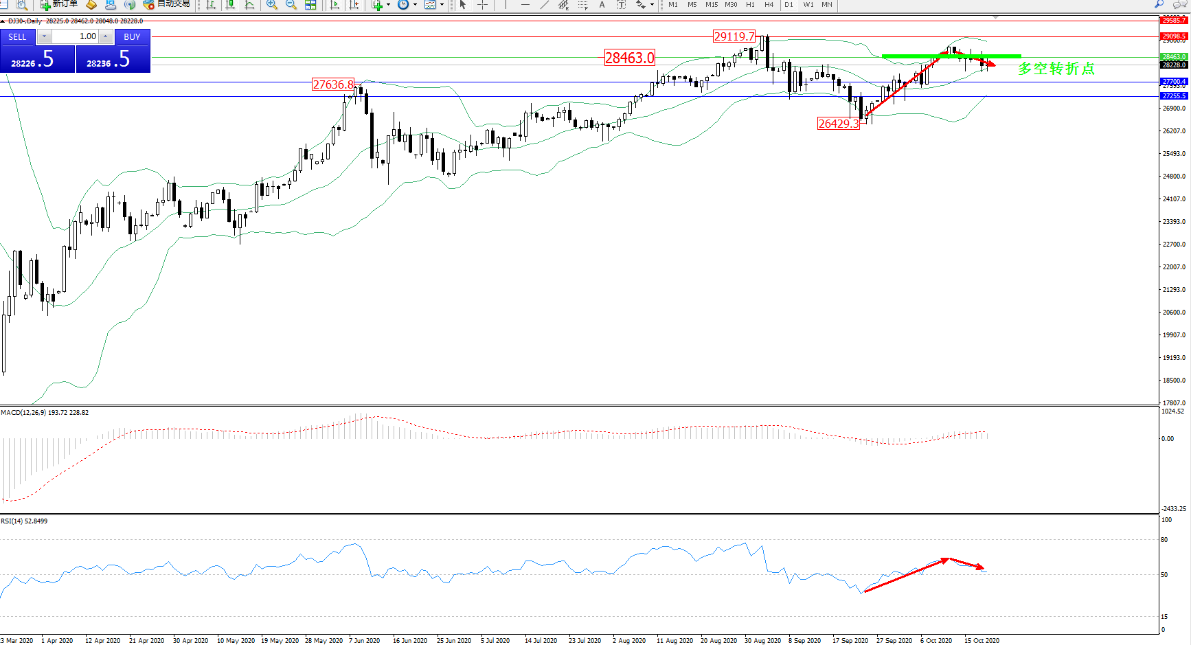 道琼斯指数10月20日(周二)收盘上涨113.40点,涨幅0.40%,报28308.79点。美股三大指数集体收涨,尽管国会议员仍未能达成新的刺激方案协议来支持经济复苏。美国众议院议长佩洛西继续与白宫就近2万亿美元的交易进行谈判。建立在刺激方案希望之上的股市上涨,促使投资者权衡佩洛西设定的周二最后期限与大选因素构成太多牵绊的猜测。不过,鉴于美联储决策者敦促更多财政支持,市场上许多人可能愿意忽视最后期限这一点。投资者正在跟踪美国众议院议长佩洛希和财政部长努钦就另一项美国冠状病毒援助计划的谈判;特朗普政府在回复国会监督委员会的提问时表示,美国财政部反对美联储5000亿美元的市政贷款计划延长到2020年之后,也反对放宽过于苛刻的条件,尽管这些条件导致这个项目几乎没有被动用。