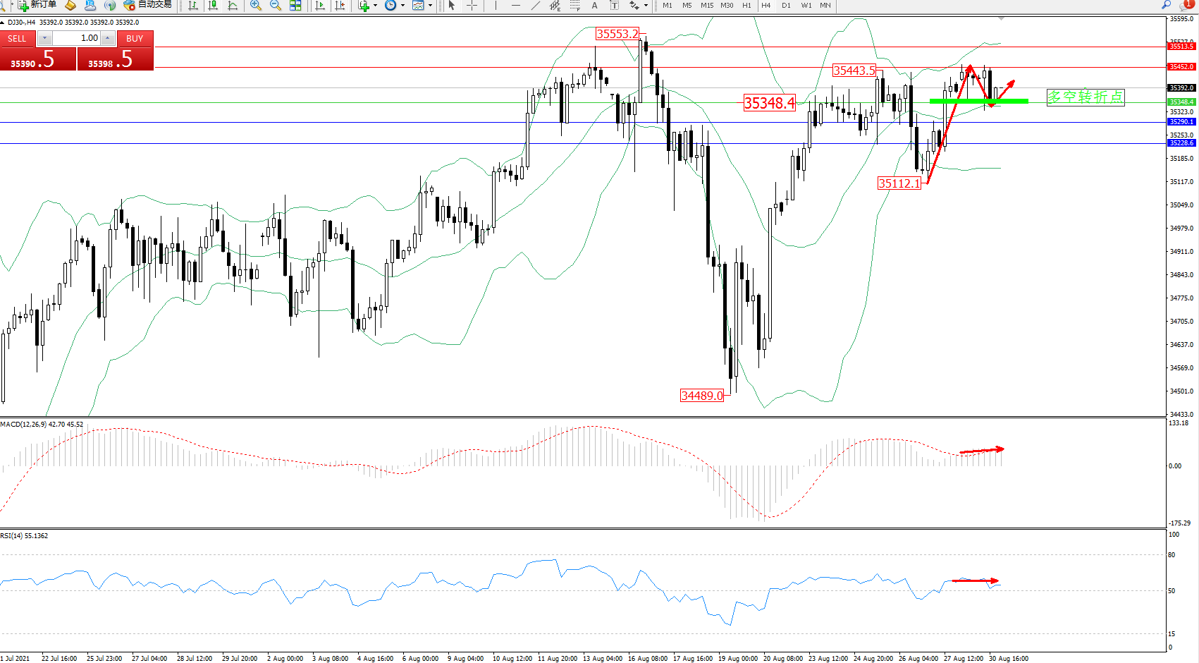 道琼斯指数8月30日(周一)收盘下跌55.70点,跌幅0.16%,报35400.10点;美股三大股指走势分化,道指初步收跌,鲍威尔的鸽派论调推动美元和实际利率走低,美联储今年可能缩减购债计划,但并未给出开始缩减的确切时间表,投资者在本周晚些时候关键美国就业报告发布前态度谨慎。强劲的数据可能会让鹰派美联储官员在主张撤回超宽松货币政策时有更大影响力。