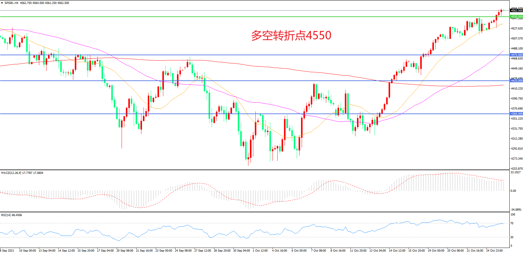 周一(10月25日),投资者静候本周Facebook、苹果等科技巨头和卡特彼勒、波音等各自业内巨头发布财报。能源和矿业股所在的板块带头上行,标普500大幅走高,收报4562.50点。虽然供应链问题并未解决,但美国经济四季度伊始似乎开始逐步走出疫情的阴霾,如果各大巨头财报表现强势,美股有望再创新高。