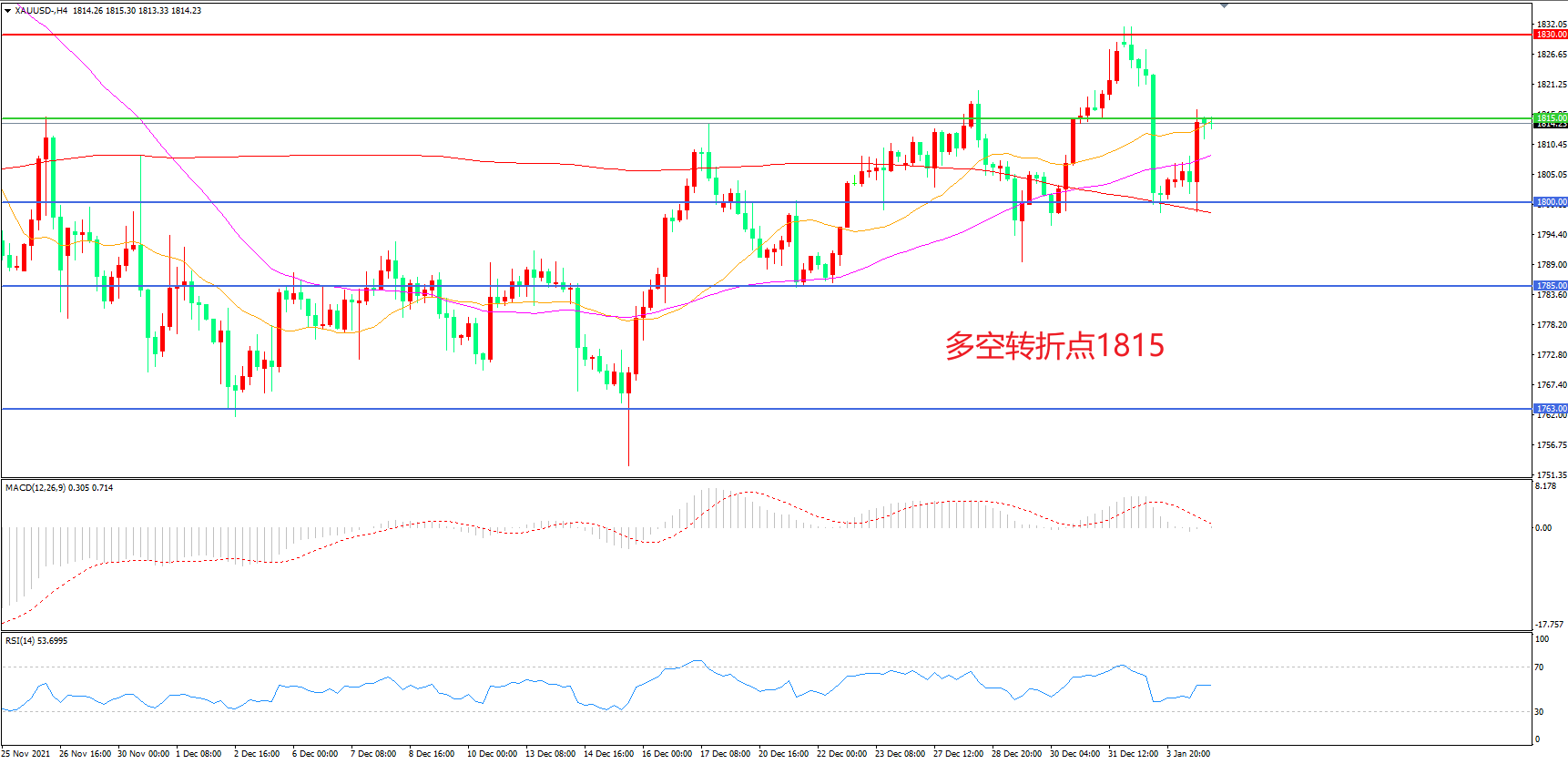 交易策略:在1815.00之上看涨,目标1830..00       1845.00