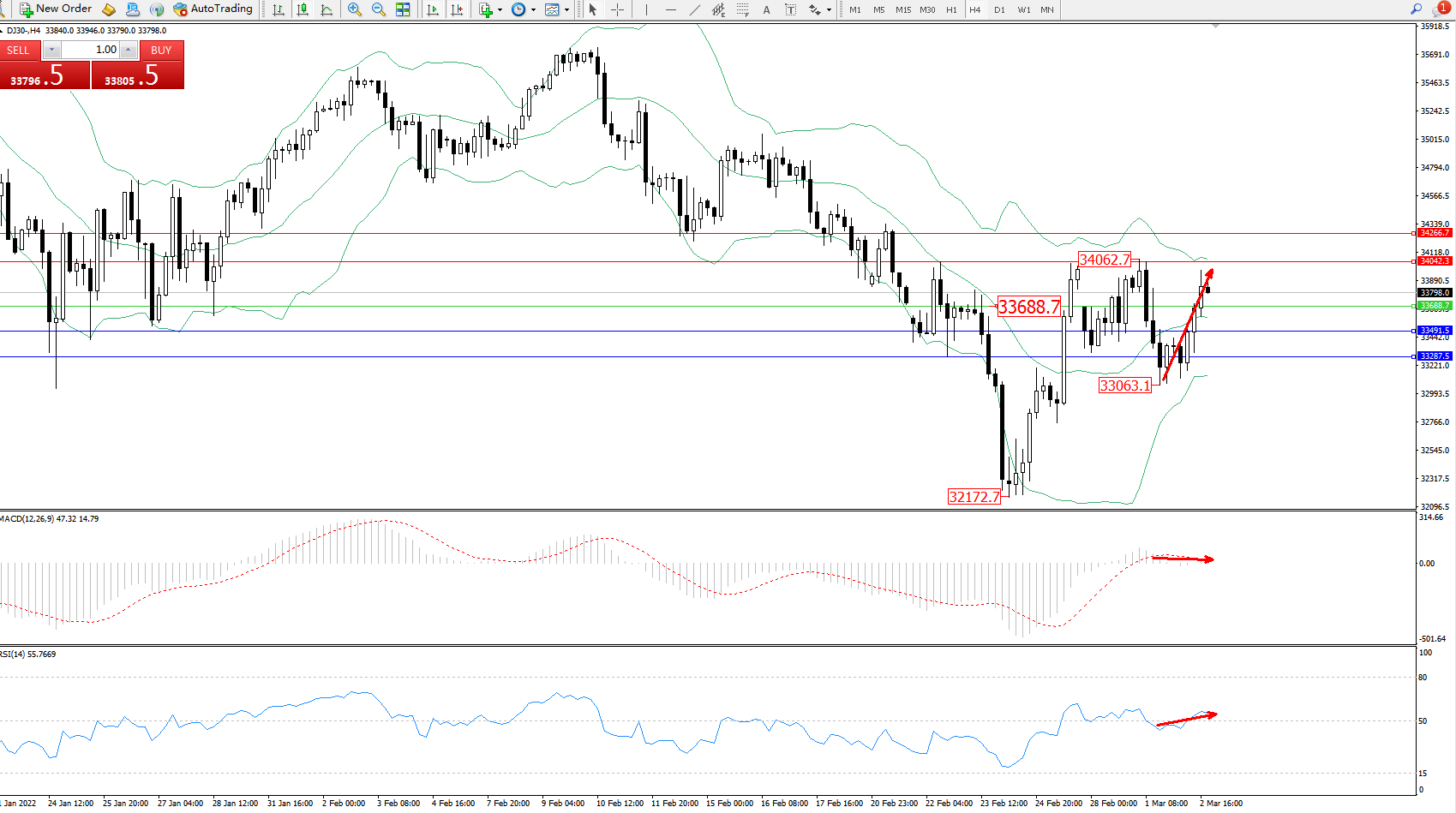 道琼斯指数3月2日(周三)收盘上涨596.40点,涨幅1.79%,报33891.35点;美股三大股指集体高收,道指初步收涨近600点,美国股市强劲反弹,美联储主席鲍威尔表示,美国经济扩张力度足以承受加息,同时承诺将审慎地退出刺激措施。鲍威尔再次强调数据驱动和灵活性,如果是在几周前这可能意味着非常动态地应对通胀,而现在很可能意味着密切关注经济增长数据。