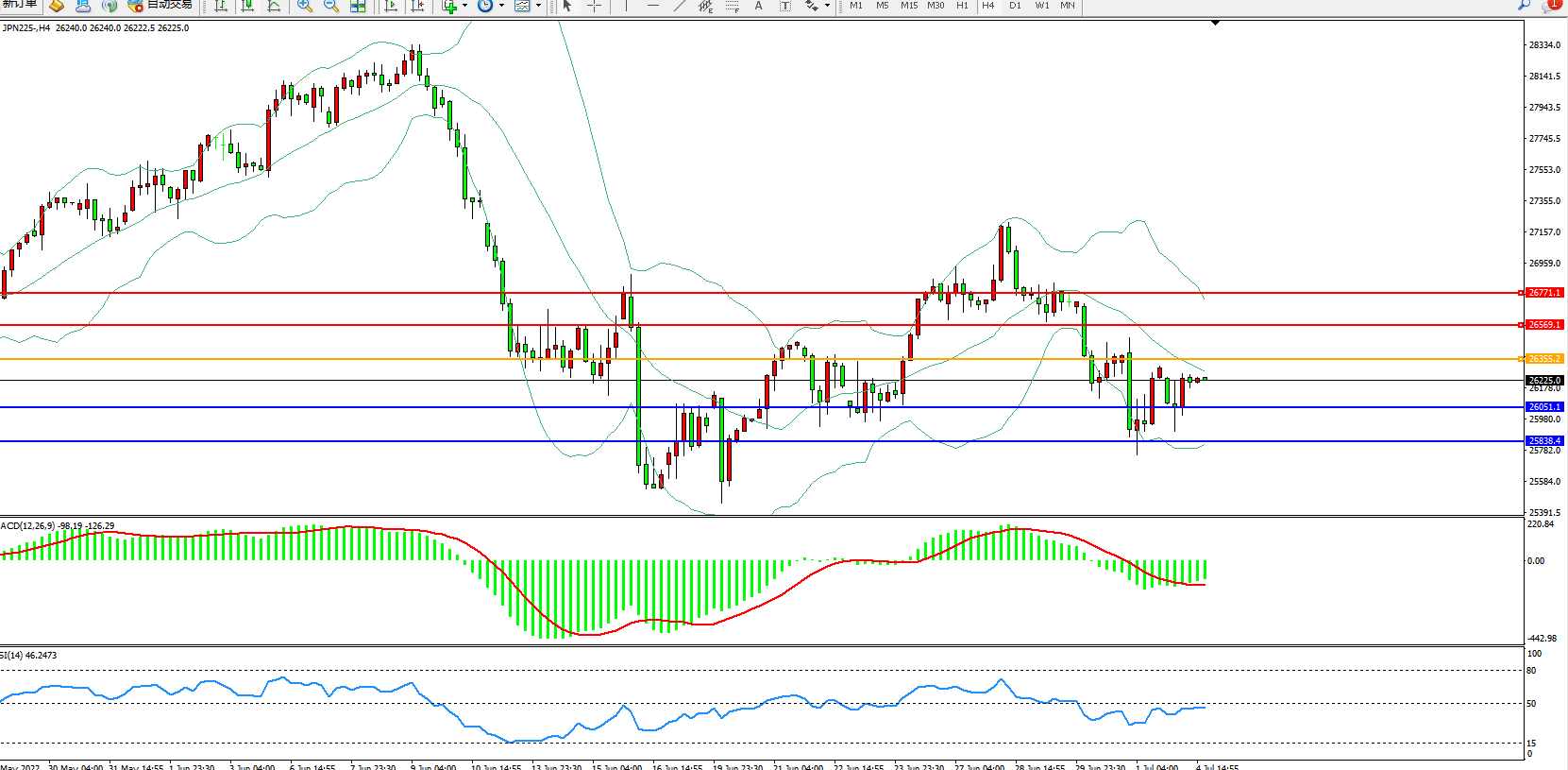 日经225指数7月4日(周一)收盘上涨223.88点,涨幅0.86%,报26159.50点。日本央行将在“未来许多季度”继续实施当前的货币宽松计划,以确保经济复苏,并追求仍然遥远的2%的可持续通胀目标。