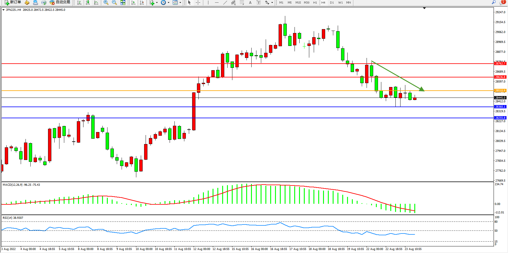 日经225指数8月23日(周二)收盘下跌346.50点,跌幅1.20%,报28448.00点。多名日本政府证实,防卫省申请的2023财年防卫预算数额刷新纪录,达到近5.6万亿日元(约合2794亿元人民币)。日本新财年防卫预算申请额创新高。