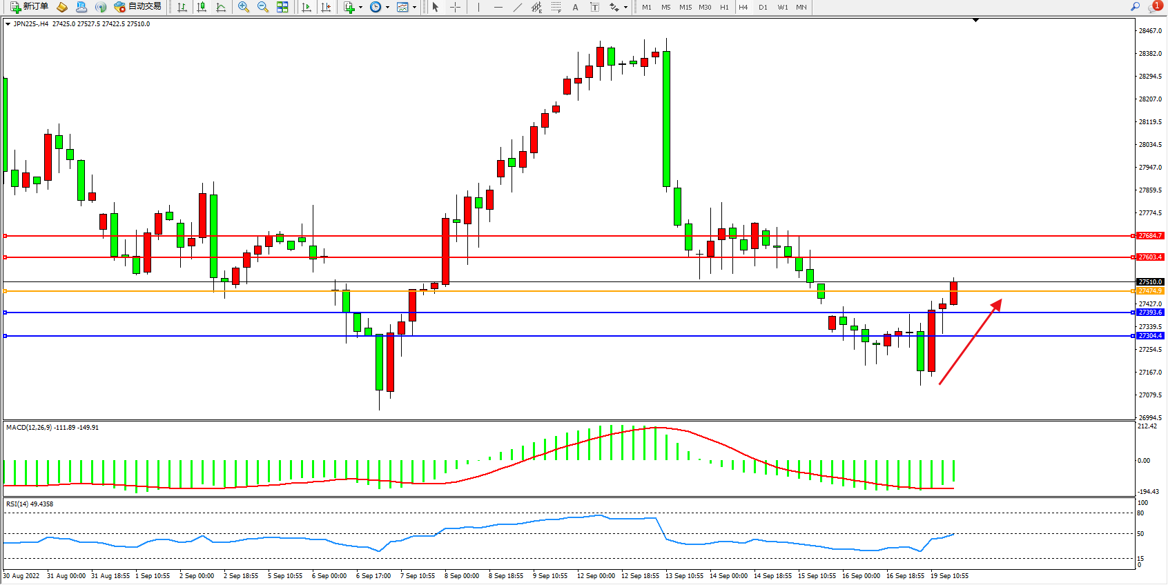 日经225指数9月16日(周五)收盘下跌308.41点,跌幅1.11%,报27567.50点。以美元计算的日本GDP正在萎缩。如果按1美元兑140日元计算,预计2022年的日本名义国内生产总值(GDP)时隔约30年低于4万亿美元(约560万亿日元),基本与第4位的德国持平。